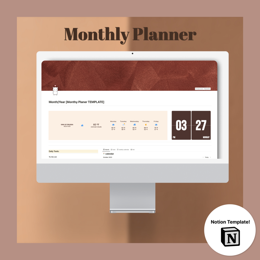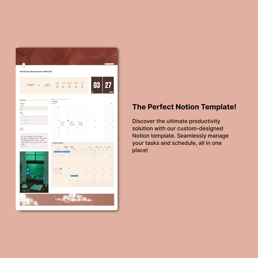 Introducing the Notion Monthly Planner! Stay on top of your personal and work commitments effortlessly with our seamlessly synchronized task board. Experience motivation on every page with inspiring quotes to keep you focused and inspired. Organize, plan, and conquer your month like a pro with our all-in-one solution. Get your hands on the ultimate productivity tool today!
